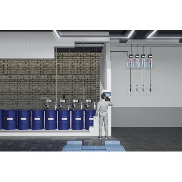 Its centralized fluid dispensing allows to: manage all fluids in a centralized way, export all the dispensing operation data, and